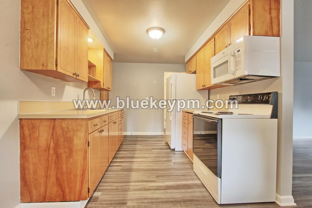 Newly remodeled 2 bedrooms and 1 bathroom duplex in Rose Village neighborhood at the corner of E 37th Street and N Street with new paint, luxury vinyl plank flooring, multiple new appliances and a new heat pump and water heater. Great location for easy commute on SR 500 or I-5. This home offers a fabulous yard with two separate fenced areas. It has a one car attached garage. The entrance of the home has a covered porch and sidewalk great for our rainy Pacific NW seasons. The living room is spacious with a picture window. The kitchen and dining room are very quaint with window viewing the front yard and plenty of cabinets and counter workspace. This home has an updated bathroom with a large vanity and tub/shower combo. The bedrooms are spacious and have new floors. Large master bedroom with dual closets! There is a fabulous linen closet in the hallway. Washer/dryer hookups are located in the garage for your use with your own machines. The home has a new heat pump for year round comfort. Pets are welcome to 35 lbs max weight. $800 additional refundable pet fee required per pet. Water/Sewer included in the rent. View our VIDEO tour on our website at www.bluekeypm.com. Applications are online at our website www.bluekeypm.com. Call Blue Key Property Management, Inc. at (360)524-4994 to schedule a showing Monday-Friday 9 am to 5:00 pm. $1795 Rent; $1795 Security deposit, $350 non refundable fee, $55 non refundable screening fee per adult age 18 and older. $800 additional refundable deposit per pet. Renter’s insurance required. For available homes, more information, rental criteria, video tours or online applications visit www.bluekeypm.com. Blue Key Property Management, Inc. licensed in WA and OR. 1312 E 37th Street Vancouver, WA 98663