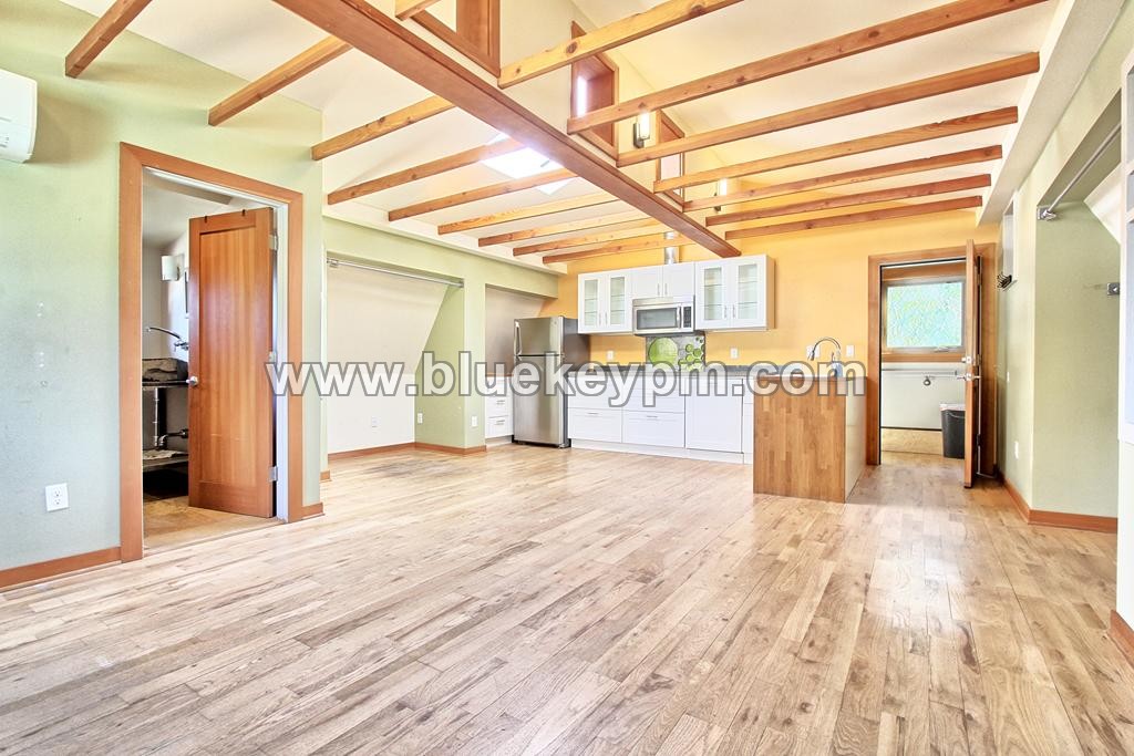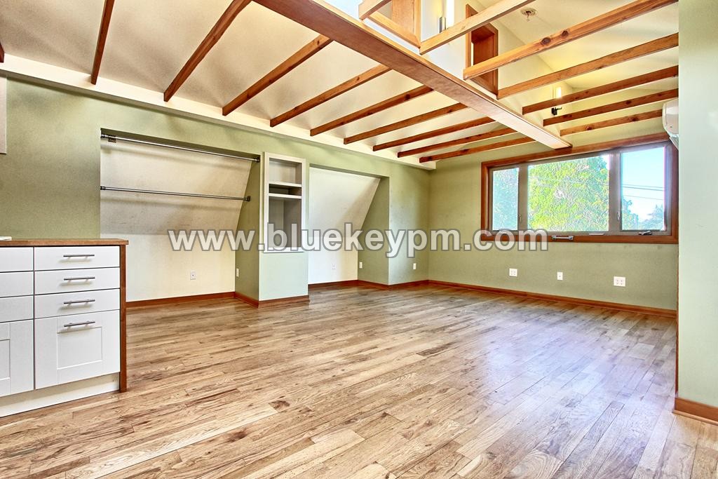 One of a kind studio ADU with a HUGE bonus room on main, patio and raised garden beds available October 1st. This unit is 2 story, open beam 12 ft ceiling studio on second floor and the bonus room on lower floor. It has a washer and dryer for your use in the bonus room, 2 closets, and an alcove for a desk. It has a large kitchen with dishwasher, refrigerator, cooktop and microwave. The spacious bathroom has a shower. This really is an amazing find!! AC in the studio upstairs. Tenant pays all utilities and maintains yard care. Street parking. No mailbox. Pet welcome by owner approval. $800 additional refundable pet deposit. View our VIDEO tour on our website at www.bluekeypm.com. Applications are online at our website www.bluekeypm.com. Call Blue Key Property Management, Inc. at (360)952-3784 to schedule a showing Monday-Friday 9 am to 5 pm. $1795 Rent; $1795 Security deposit, $350 non refundable fee, $55 non refundable screening fee per adult age 18 and older. $800 additional refundable deposit per pet if owners allow pets. Renter’s insurance required. For available homes, more information, rental criteria, video tours or online applications visit www.bluekeypm.com. Blue Key Property Management, Inc. licensed in WA and OR. 706 West 17th Street Unit B, Vancouver, WA 98660