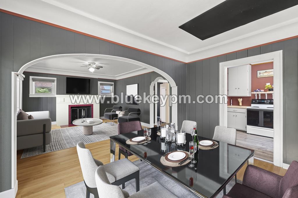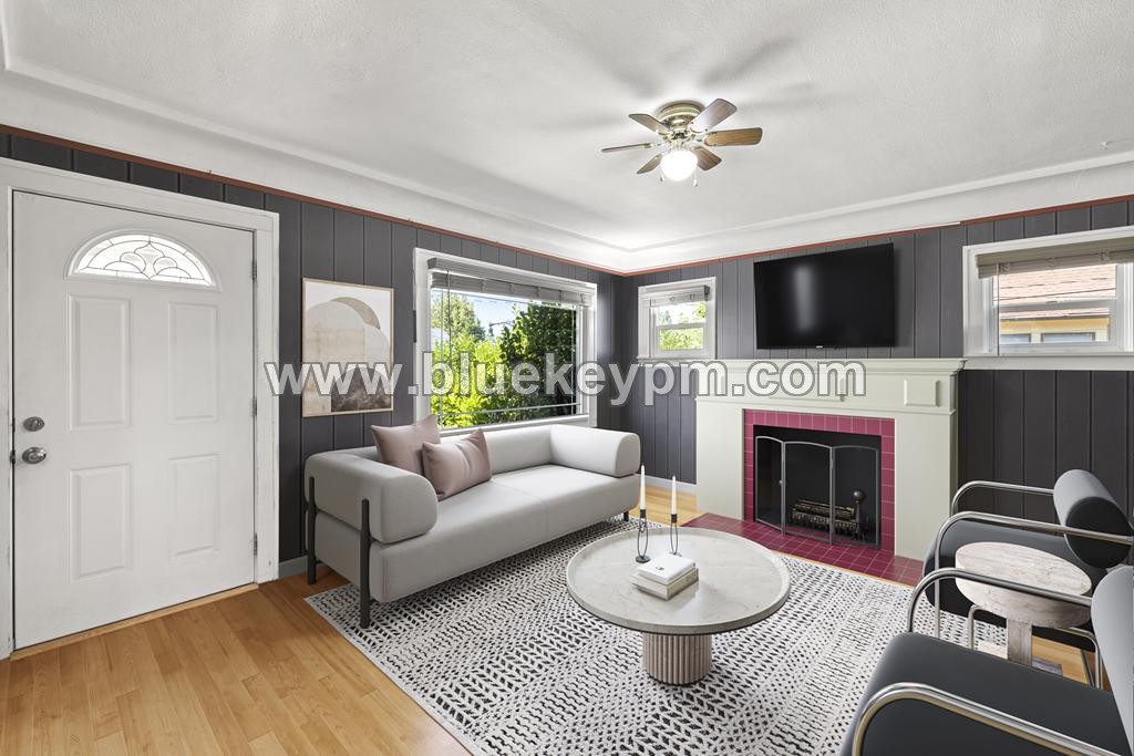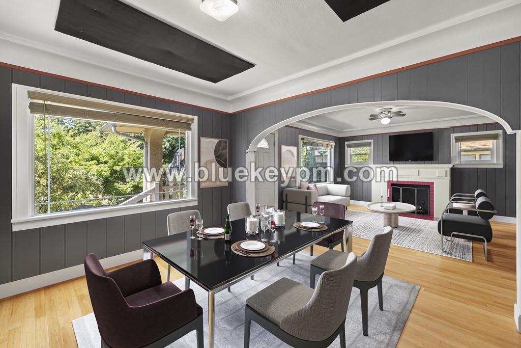 Fabulous find in Oregon City! This bungalow home is 2300 sq ft and has a carport, covered entry and covered back deck, finished basement and huge fully fenced yard. The interior of this home has been completely updated adding modern beauty to meet the lovely architectural arches, refinished hardwood floors, windows and woodwork. The living areas is very spacious with an aesthetic fireplace and large windows in both the living and dining areas. It has a bright kitchen with an abundance of cabinets for storage, counters for your culinary adventures and timeless functionality. There is a laundry room off the kitchen with convenient washer and dryer for your use. The shared bathroom has a tub/shower combo and vanity for storage. The bedrooms are located on main floor. They have multiple windows for natural light and wood floors. There is a fully finished basement with half bath plus multiple rooms to use as a family room, recreational room or home office. Pets are welcome to by management approval. Additional refundable pet fee of $800 for each pet. Tenants maintain the yard care and all utilities. View our VIDEO tour on our website at www.bluekeypm.com. Applications are online at our website www.bluekeypm.com. Call Blue Key Property Management, Inc. at (360)952-3784 to schedule a showing Monday-Friday 9 am to 5 pm. $ Rent, $ Security deposit, $55 non refundable screening fee per adult age 18 and older. $800 additional refundable deposit per pet if owners allow pets. Renter’s insurance required. For available homes, more information, rental criteria, video tours or online applications visit www.bluekeypm.com. Blue Key Property Management, Inc. licensed in WA and OR. 1313 7th Street Oregon City, OR 97045